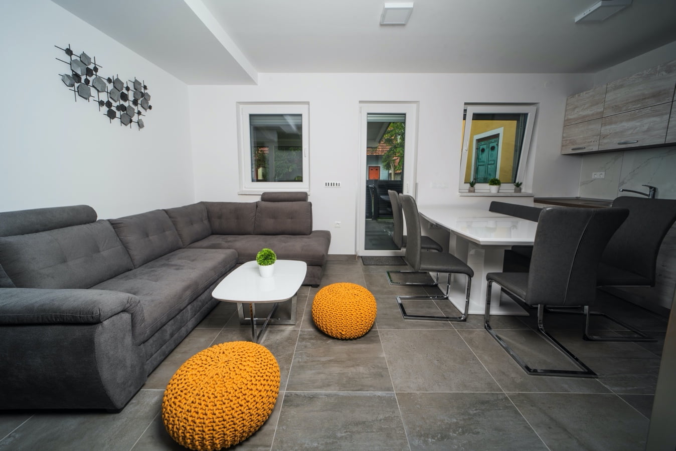 Dnevna soba je moderno zasnovana, ponaša se tudi s talnim gretjem in