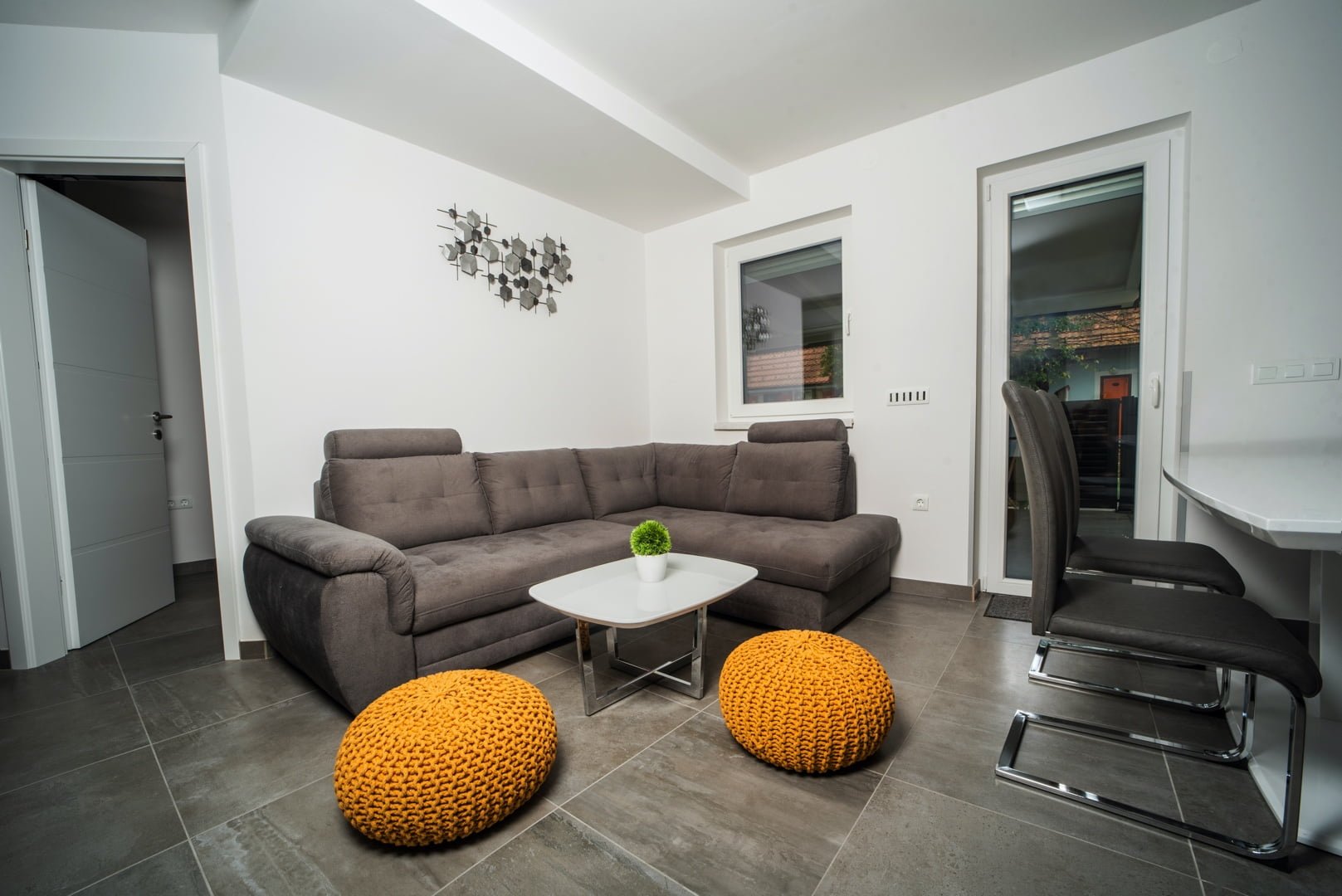 Dnevna soba je moderno zasnovana, ponaša se tudi s talnim gretjem in
