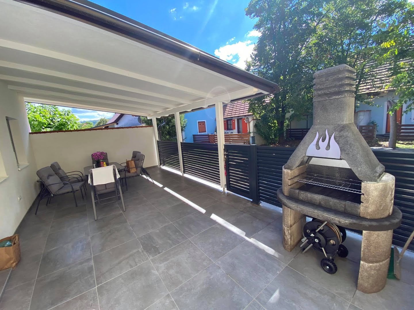 V počitniški hiški Villa Lara**** smo poskrbeli tudi za 32m2 veliko zunanjo teraso, ker sta odlična zabava in super druženje zagarantirani. Na teraso smo namestili veliko mizo s stoli, velik vrtni kamin – žar, mizo za namizni tenis, pikado, sedežno garnituro, senčnik in ležalnike. Na voljo je tudi mreža za igro badmintona z vso pripadajočo opremo (loparji + žogice) in dva kolesa.